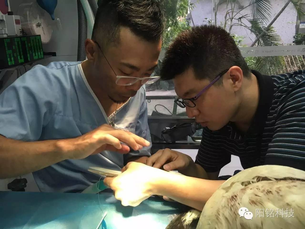 圖 9(動物醫院的醫生們正在為“立立”進行義喙安裝手術)